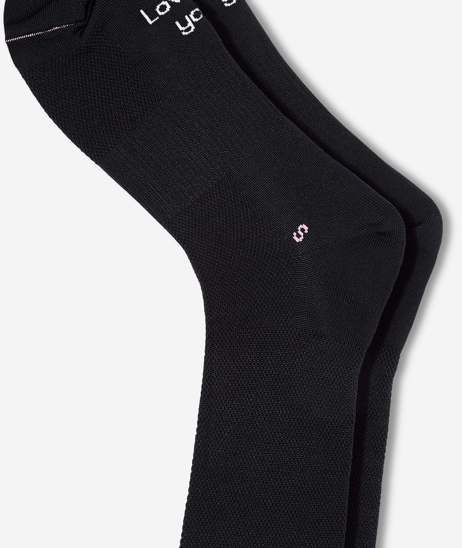 Throughout the socks, a supportive mid-arch, heel area and engineered toe-box trimmed with pink stitching meet the demands of daily wear. A tone-to-tone QUOC logo faces the rear, completing a light upper styled to reflect the dimpled Aerofoil exterior of the Mono road cycling shoe.
