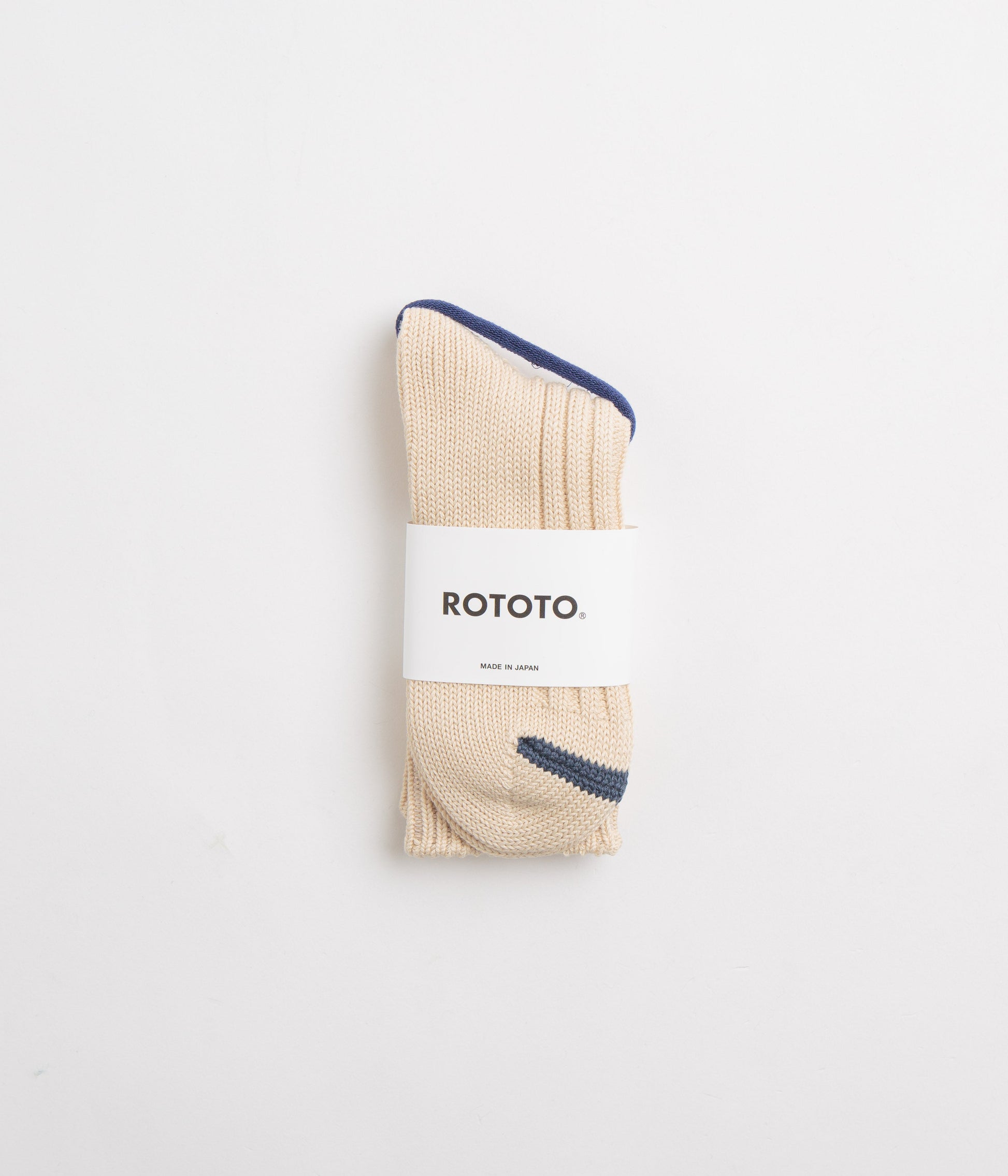 RoToTo Chunky Ribbed Crew Socks - Raw Beige / Dark Blue