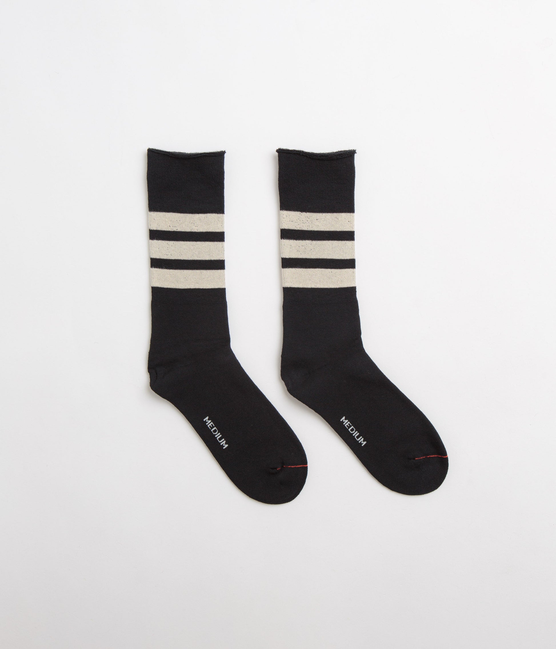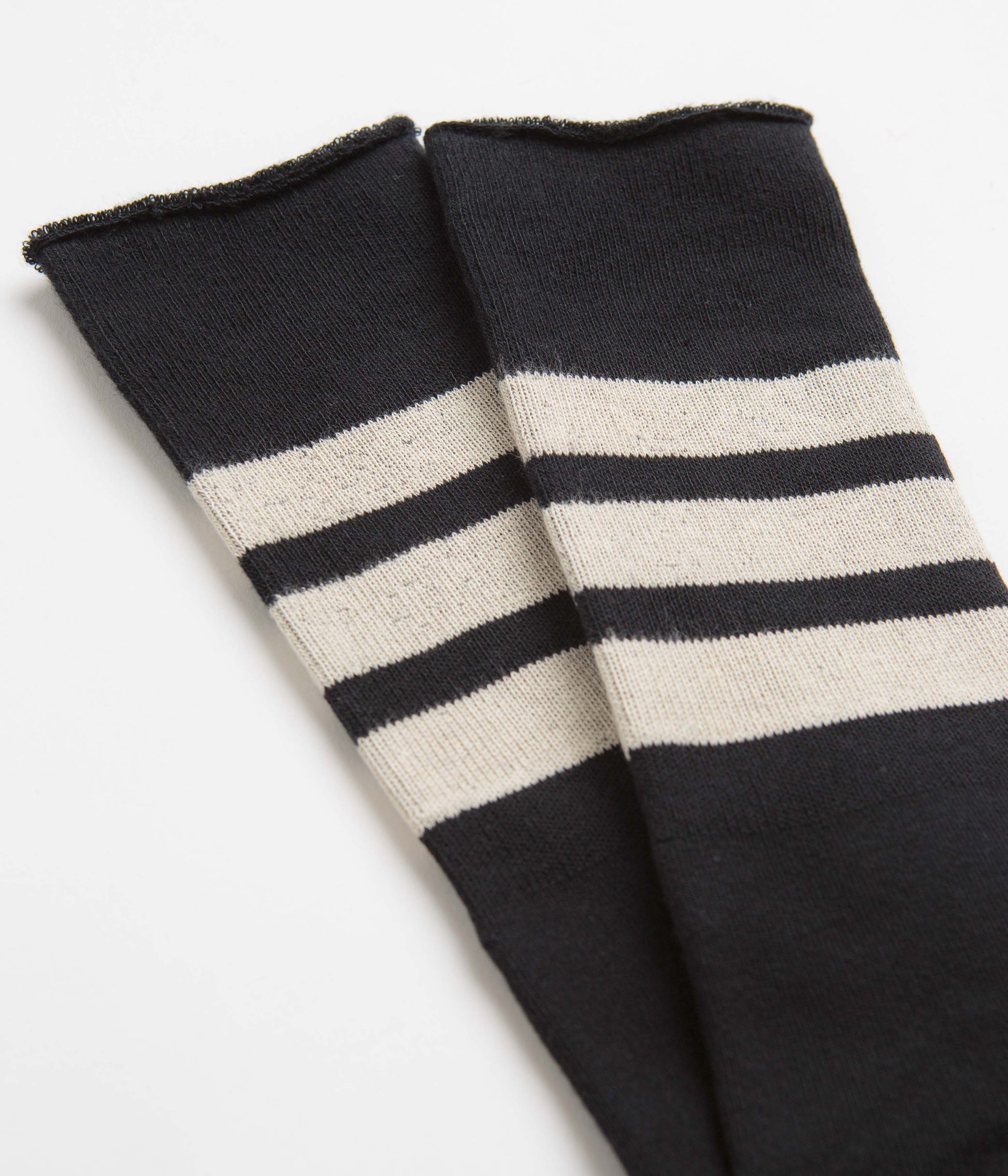 RoToTo Fine Pile Striped Socks - Black / Raw Beige