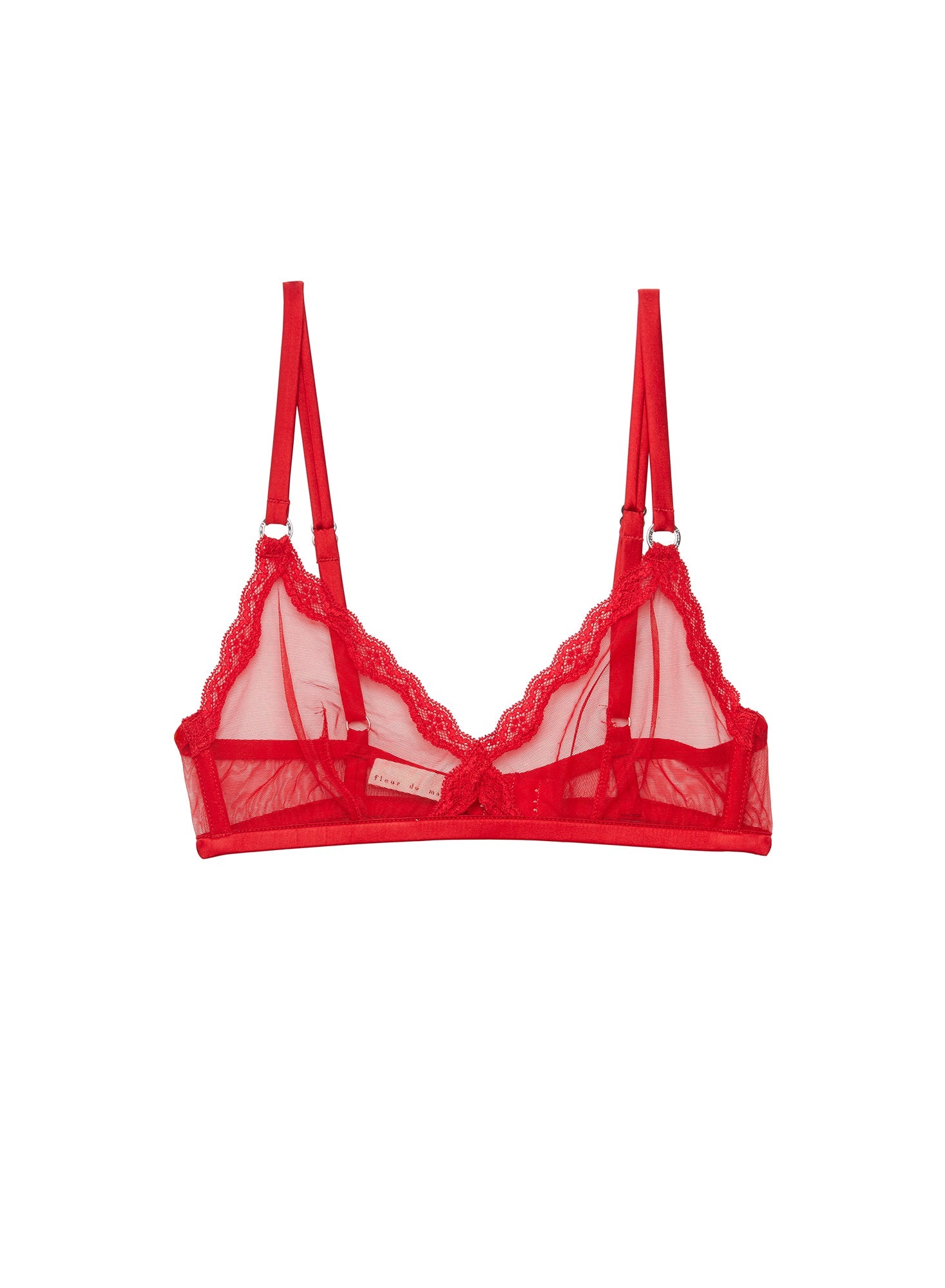 Sheer genius. Unlined Italian sheer stretch tulle bralette with soft boning at side seams for added support. Features playful lace trim and front cutout. Silk adjustable straps with o-ring detail make this comfortable bralette perfect for everyday. Complete the set with the matching Sheer Tulle Thong.