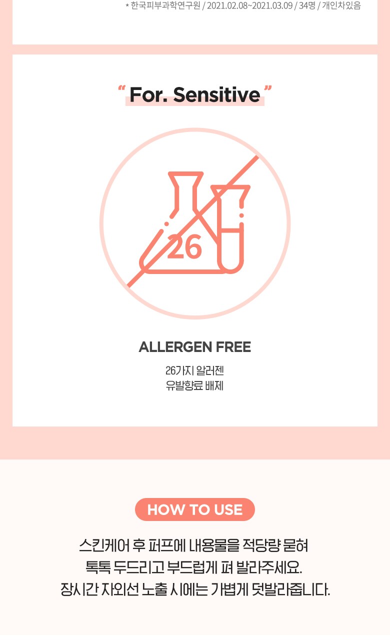 | How to Use | If you need UV protection and tone up before and after makeup, apply the contents to the puff and pat it gently. |
