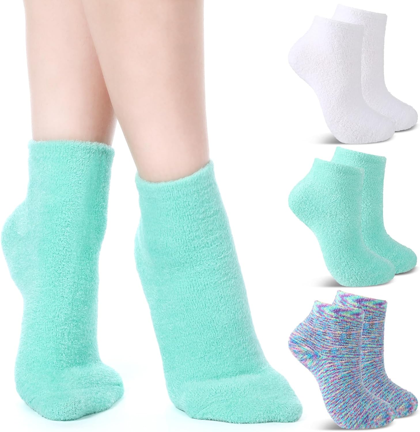 Tarpop 3 Pairs Aloe Socks Moisturizing Spa Socks for Dry Cracked Feet Infused Socks Gel Sleeping Fuzzy Socks Lotion Socks Gift for Christmas Women Men Softening Dry Feet(White, Green, Colorful)