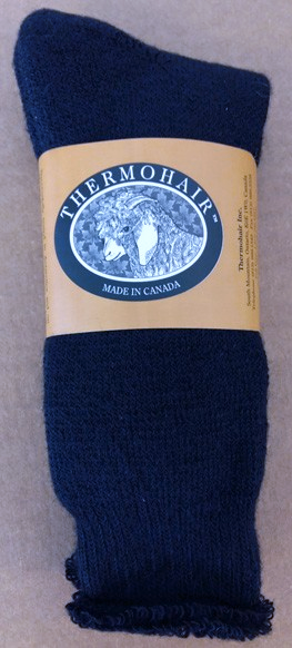 Successfully tested in Antarctica and on the world’s highest peaks, the regular crew socks are the original “Thermohair” socks and have been on the market since 1992. They are knit with large loops of luxuriously soft 75% kid mohair and 25% nylon yarn. With unparalleled insulation and cushioning, they are the most comfortable, warm, durable socks that you will ever own. Ideal for those working and playing in the cold outdoors: contractors, hunters, fishermen, hikers, trekkers, linesmen, skiers, snowmobilers, skin divers………..in the men’s med size and up, the grey socks are 10% thicker than the other colours, for that extra warmth in your steel toed boots.